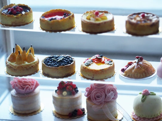 Täältä löydyt nukkekotiisi tai esim. konditoriaan herkullisia kääretorttuja, kuivakakkuja ja täytekakkuja.